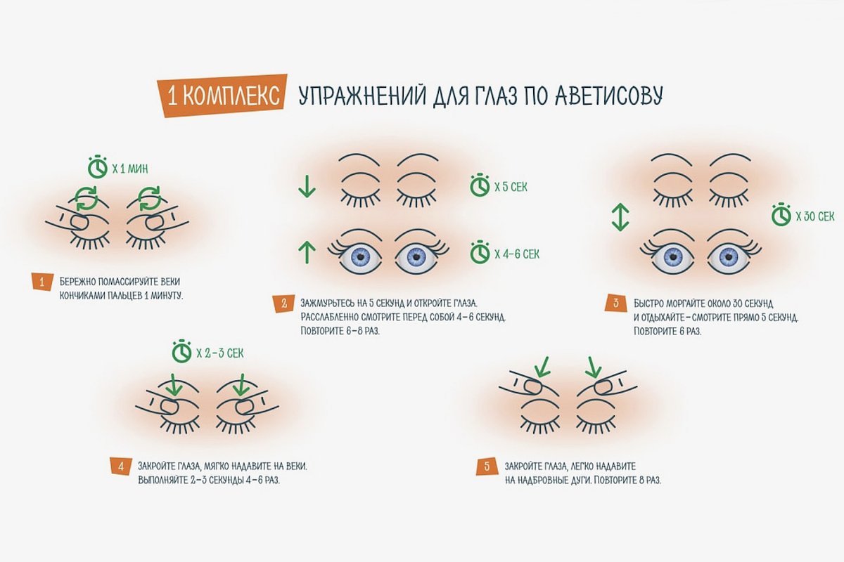 Для этого лучше всего подойдет специальный комплекс упражнений Аветисова. Он направлен на тренировку ресничной мышцы глаза, которая отвечает за способность четко видеть предметы как вблизи, так и вдали.