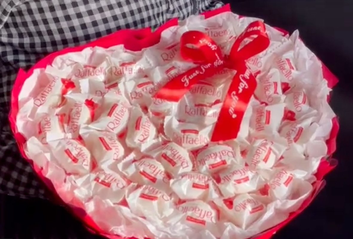 Заранее убедитесь, что у получательницы сладкого букета нет аллергии на компоненты в составе конфет