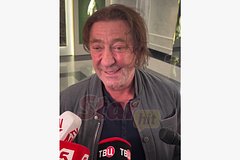 63-летний исполнитель дал интервью порталу и ответил на вопросы журналистов. На размещенных кадрах он предстал с небрежной укладкой, надев черную рубашку и серую куртку.